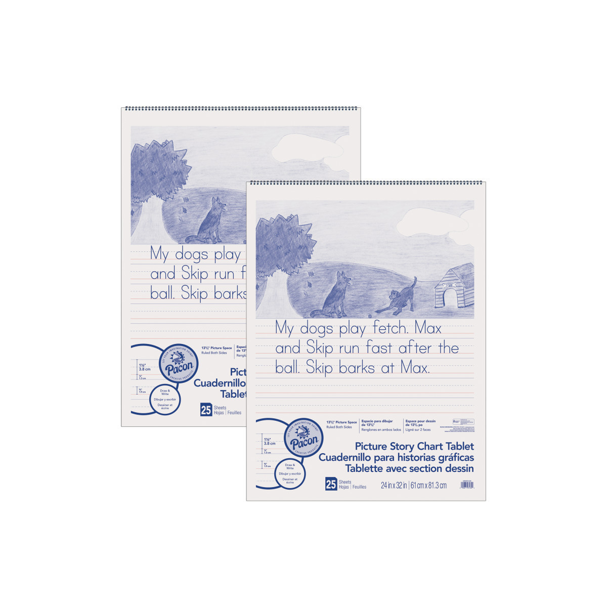 Pacon® Chart Tablets work great for classroom anchor charts. Designed to assist in classroom demonstration, this chart tablet can be used to help reinforce lessons being taught, and can also serve as a reference tool to help children with problem solving. This chart tablet is 1.5" ruled with a 0.75" dotted midline and 0.5" skip space and has a 13.625" picture story area at the top. Recyclable. Measures 24" x 32". Each tablet includes 25 sheets. Sold as a pack of 2 tablets.