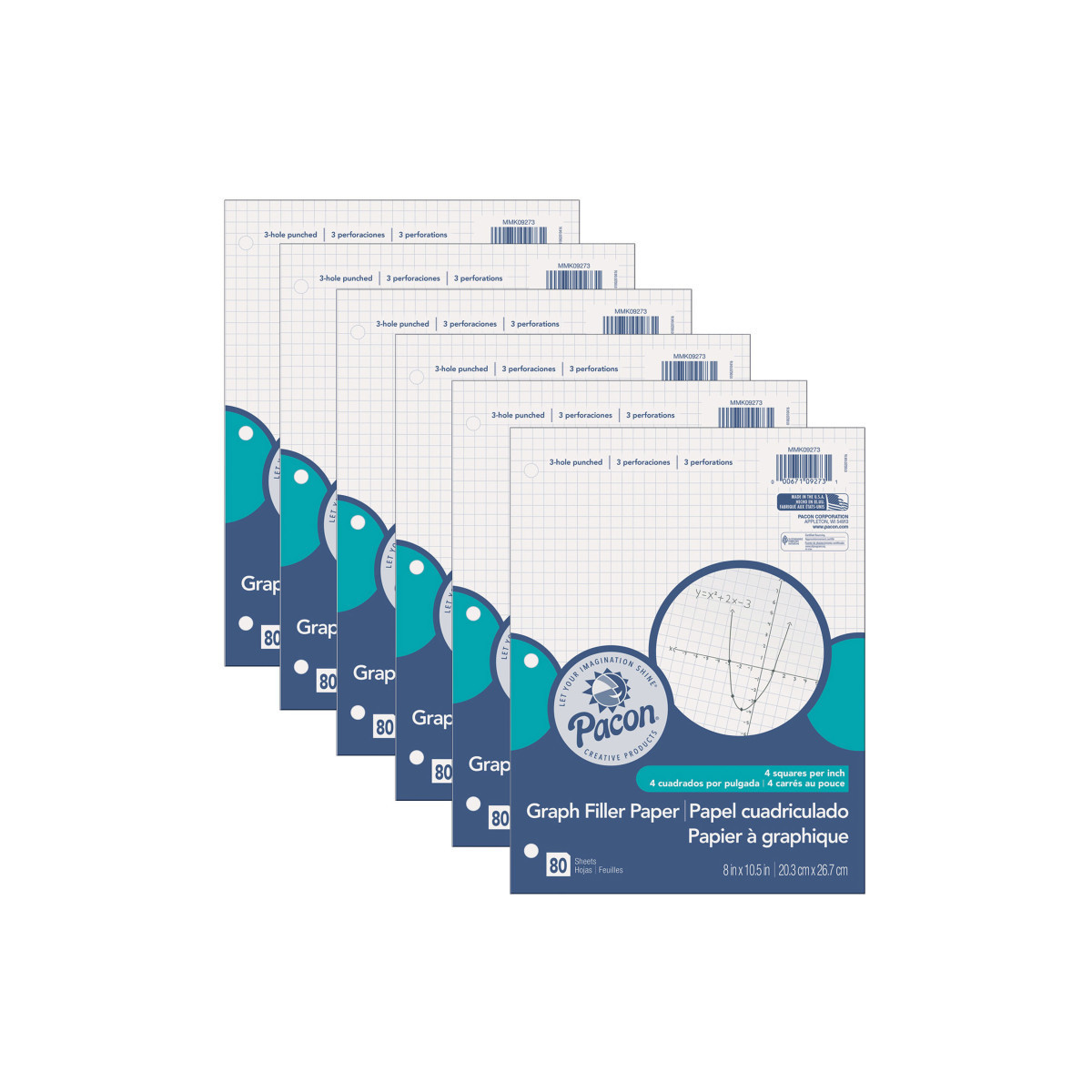 Quality filler paper for all of your home, office and classroom needs. Smooth White paper features 1/4" grid ruling in 8" x 10-1/2" size. 3-hole punched and ruled on both sides. Recyclable. Each package contains 80 sheets. Sold as 6 packs for a total of 480 sheets.