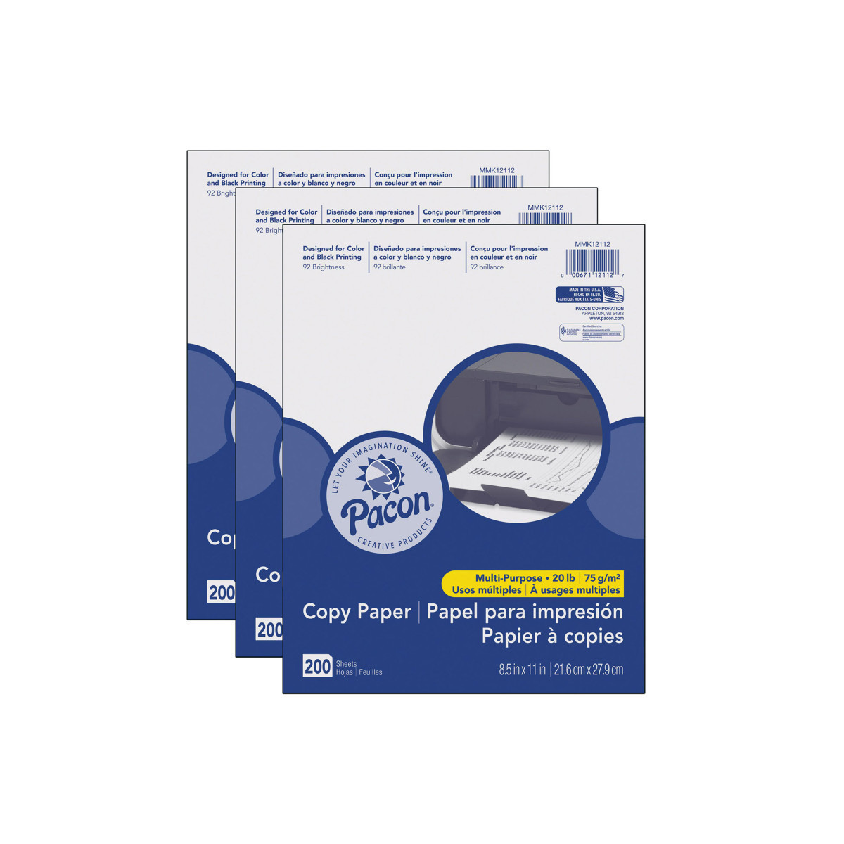 Convenient for school, home or office use, this 20 lb. multi-purpose paper is inkjet and laser printer compatible. Recyclable. Measures 8.5" x 11". Each pack includes 200 white sheets. Sold as 6 packs for a total of 600 sheets.