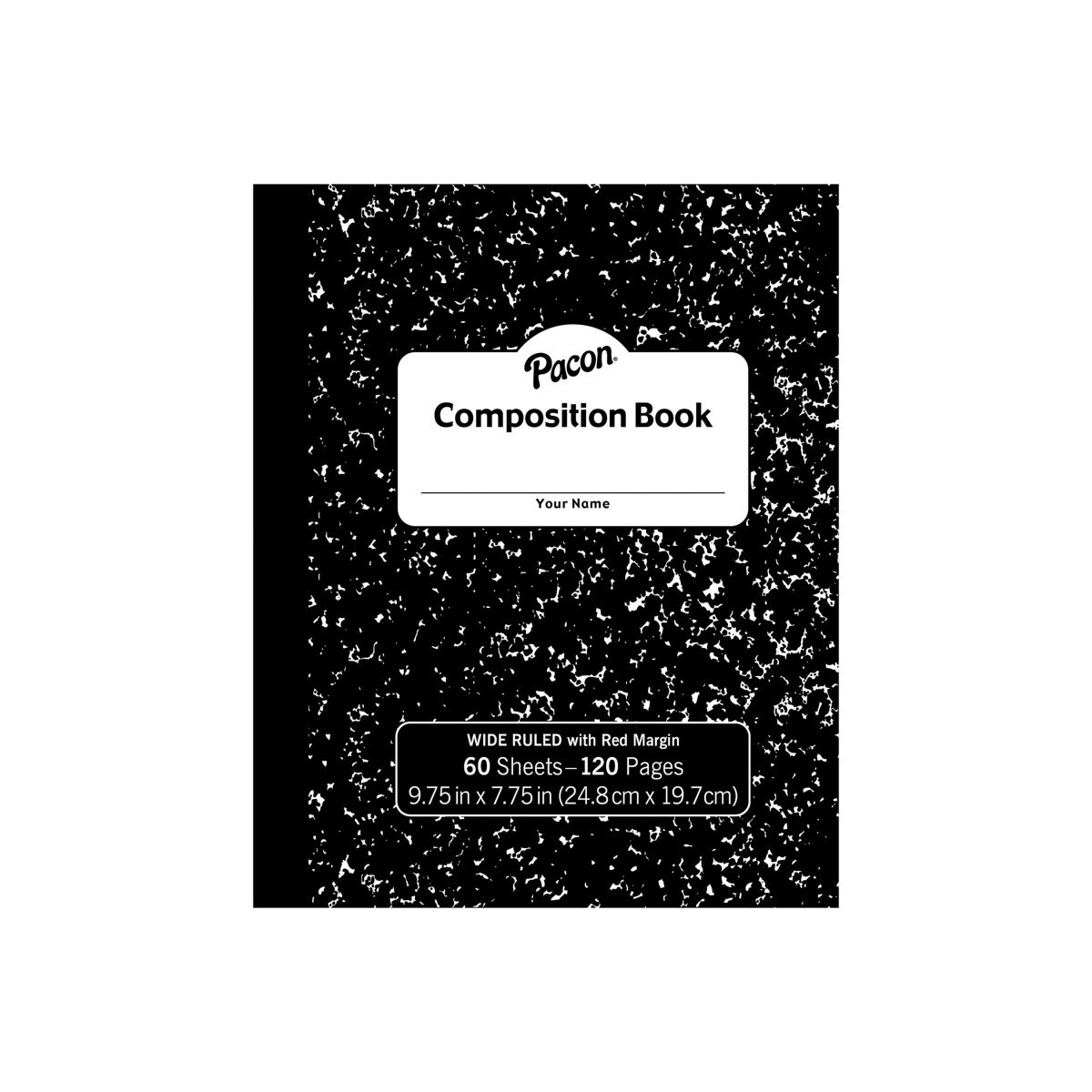 Durable, soft cover, one-subject composition books are great for note taking and journaling. 3/8" wide ruled with red margin. Measures 9.75" x 7.75". Includes 60 sheets.