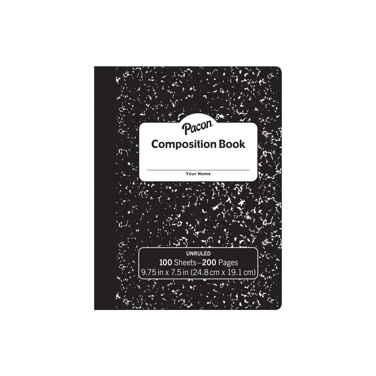 Black marble, hard cover composition book with 100 sheets to meet your needs. Sheets are unruled giving you all the space you need to draw and annotate. Great for drawing, note taking and journaling. Recyclable. Measures 9-3/4" x 7-1/2".