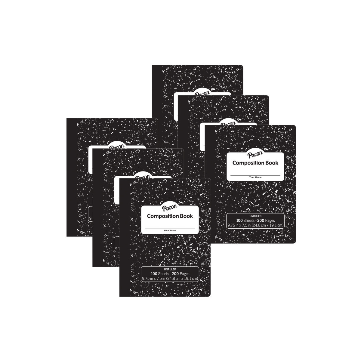 Black marble, hard cover composition book with 100 sheets to meet your needs. Sheets are unruled giving you all the space you need to draw and annotate. Great for drawing, note taking and journaling. Recyclable. Measures 9-3/4" x 7-1/2". Sold as a pack of 6 composition books.