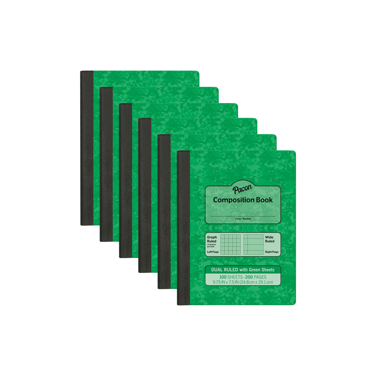 The Pacon® Dual Ruled Composition Books feature two alternating ruling styles. The right-hand page offers a 3/8" wide ruling for traditional note taking and the left-hand page features a 1/4" grid ruling to draw coordinating graphs, illustrations and interpretations. Note taking in this manner engages both hemispheres of the brain. Using colored paper has been shown to help students with dyslexia work through the impacts of this learning disability. Sold as a pack of 6 books.