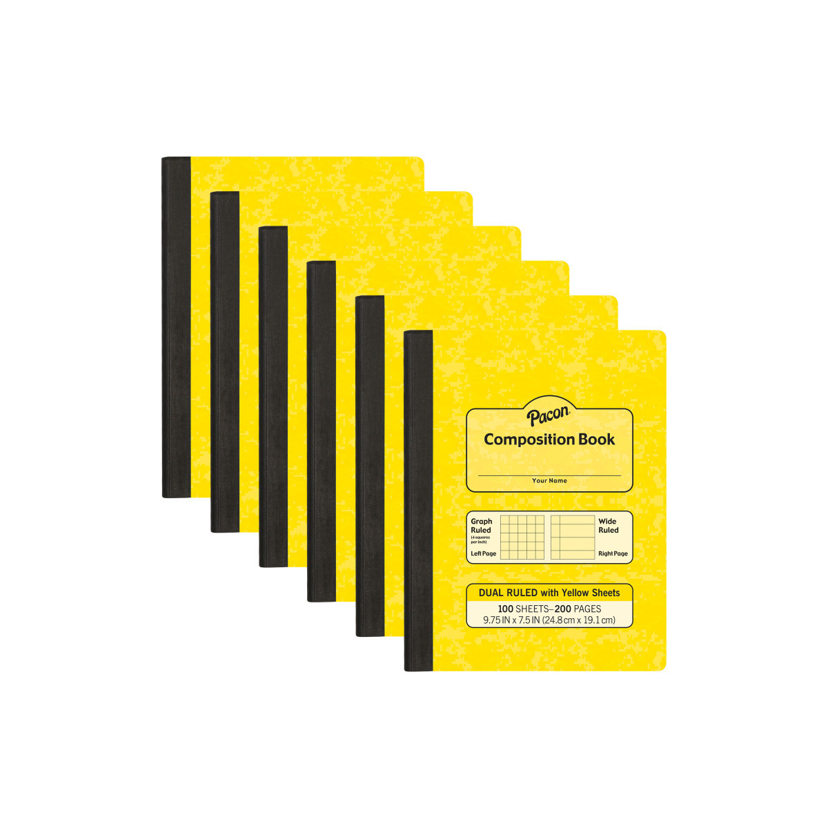 The Pacon® Dual Ruled Composition Books feature two alternating ruling styles. The right-hand page offers a 3/8" wide ruling for traditional note taking and the left-hand page features a 1/4" grid ruling to draw coordinating graphs, illustrations and interpretations. Note taking in this manner engages both hemispheres of the brain. Using colored paper has been shown to help students with dyslexia work through the impacts of this learning disability. Sold as a pack of 6 books.