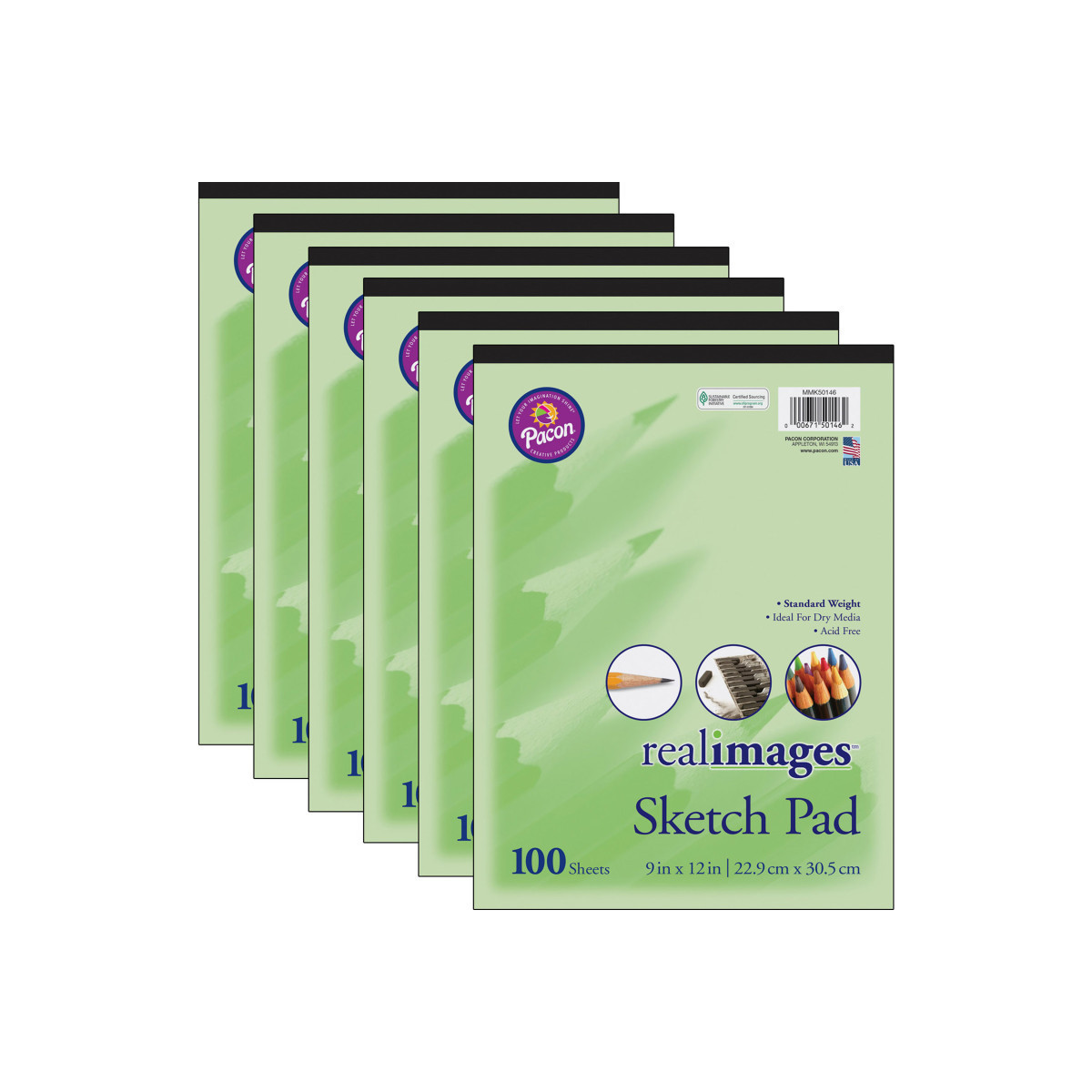 Real Images™ Sketch Pad provides a great value with standard weight paper. Ideal for use with dry media. Tape-bound pad is ideal for elementary and student use. Acid-free and recyclable. Each pad includes 100 sheets and measures 9" x 12". Sold as a pack of 6 pads.