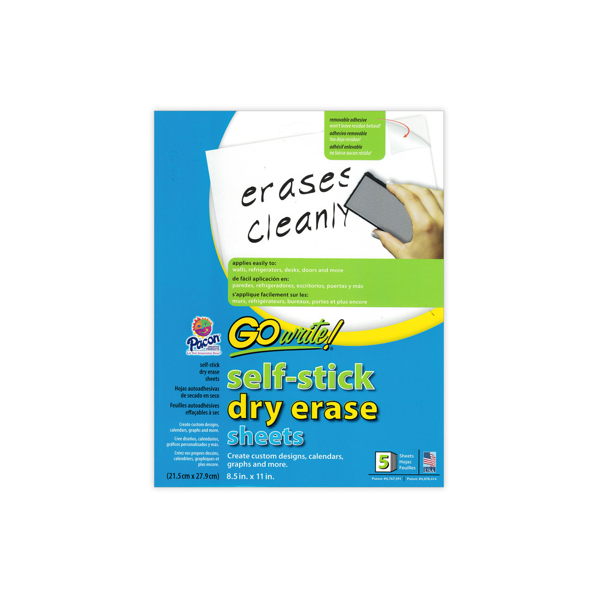 These sheets make an easy and convenient way to create a dry erase board anywhere. Stick to the wall, door, table, desktop or refrigerator. Great for meetings, to-do lists, classroom activities and much more. Each sheet has a full-adhesive backing, won't leave residue behind and erases cleanly. Not recommended for use in Laser printers. Each pack includes 5 sheets.