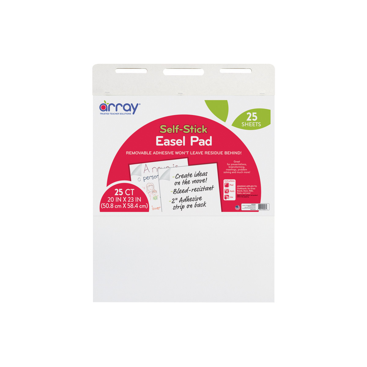 Great for brainstorming, problem solving and much more. Write down group thoughts and post sheets on the wall as you fill them. Each sheet has a 2" adhesive strip on the back, making it a great resource for meetings. Removes cleanly without leaving residue behind. Bleed-through resistant with a sturdy cardboard backing. Includes a convenient handle for easy transportation. Works great for classroom anchor charts. Recyclable. Measures 20" x 23". Includes 25 sheets.