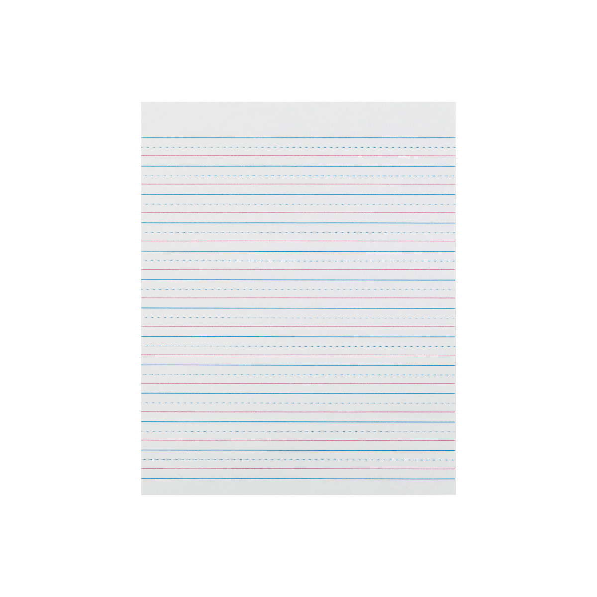 Clean White sulphite paper printed on both sides with a red baseline and a dotted blue midline, making it easy for students to find the headline quickly and easily. It's also great for tracking students' handwriting progress over time, and helps build a solid foundation for students to write legibly and communicate effectively through writing. Ruled 1/2" (short way), 1/4" dotted midline, 1/4" skip space. For Grade 2. Recyclable. Measures 8" x 10.5". Each pack includes 500 sheets.