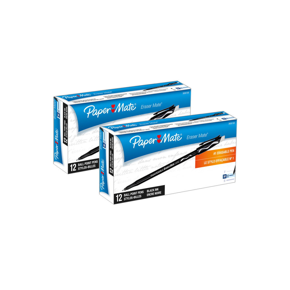 Ink is pressurized, allowing you to write at any angle for complete versatility. Technology advanced erasable ink allows you to write like a ballpoint pen, yet fix mistakes like a pencil. Produces clean, smooth writing on just about any type of surface. Special Ink Type: Erasable; Pen Style: Stick; Ink Color(s): Black; Pen Type: Ballpoint. Sold as 2 dozen pens.