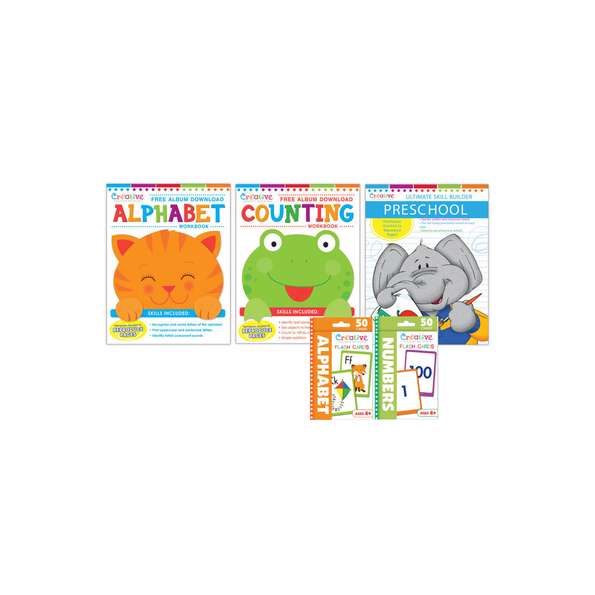 Complete Skill Set – Bundle includes Alphabet Workbook, Counting Workbook, Ultimate Skill Builder Workbook, Numbers Flashcards, and Alphabet Flashcards for a full learning experience.