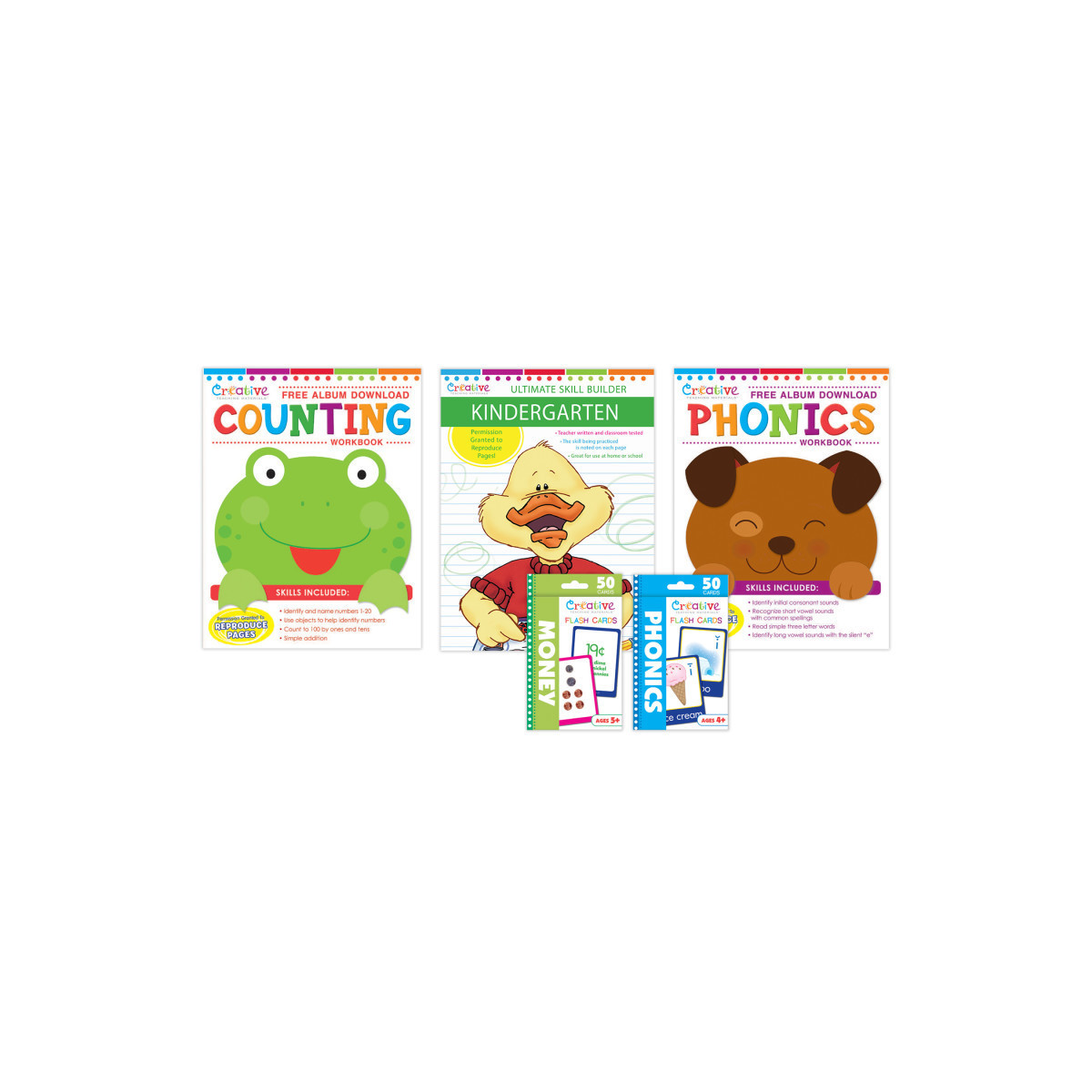 Comprehensive Kindergarten Bundle – Includes workbooks and flashcards for essential skills like phonics, counting, money, and more.