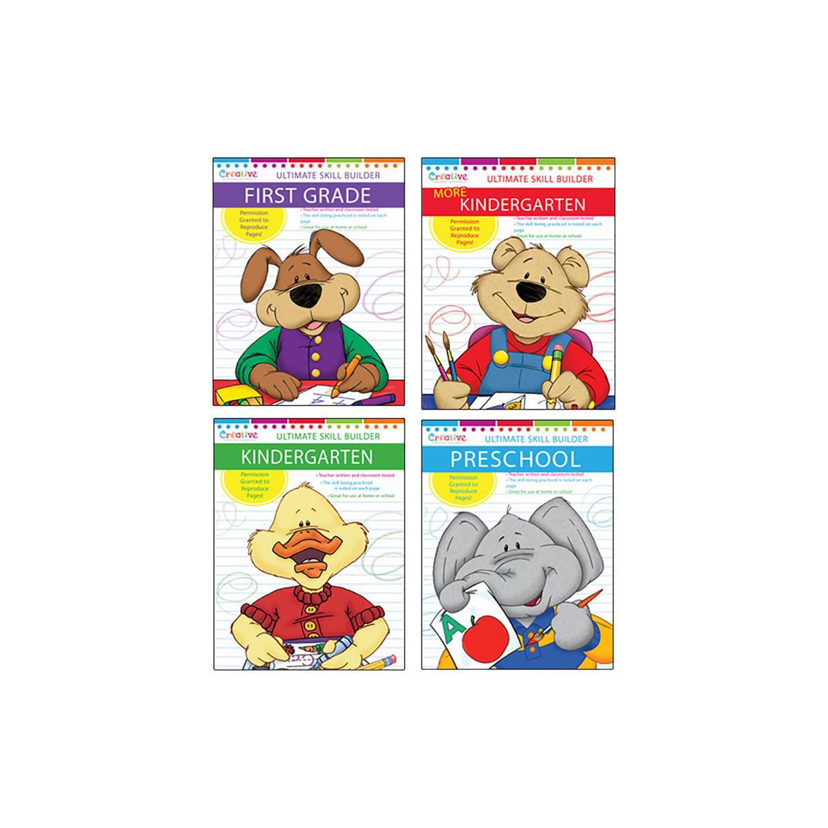 The Ultimate Skill Builder Workbook Bundle is designed to prepare children for school success with four engaging workbooks tailored for preschool through first grade. Each workbook offers 320 pages of black and white activities covering a wide range of academic skills, including numbers, shapes, letters, phonics, patterns, addition, subtraction, and more. Suitable for ages 3 to 6+, these teacher-written and classroom-tested resources feature clear instructions and skills noted on each page, making it easy for both parents and educators to track progress. The bundle also grants permission to reproduce pages, allowing for repeated practice and reinforcement of essential skills. Each workbook measures 8.375" x 10.875", making them a perfect fit for home or classroom learning.