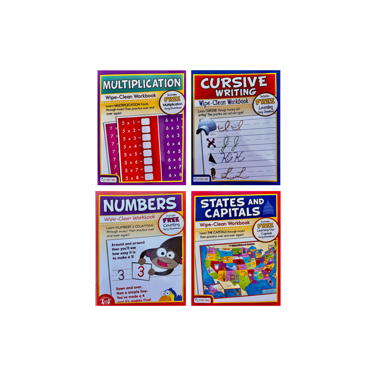 Free Music Downloads: Each book includes a song to reinforce learning in multiplication, states and capitals, cursive, and counting.