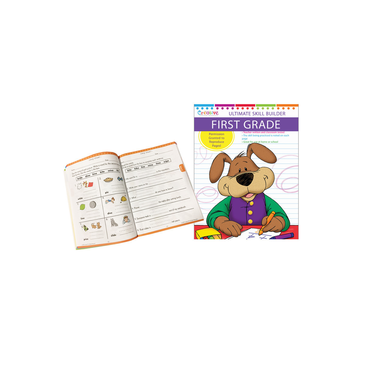 Prepare your first grader for a successful school year with this comprehensive workbook bundle! This set includes Let's Get Ready for 1st Grade Workbook and First Grade Ultimate Skill Builders Workbook, each packed with engaging activities that build essential skills in math, language arts, and reading comprehension. With 256 full-color pages, Let's Get Ready for 1st Grade helps young learners tackle addition, subtraction, place value, time-telling, and measurement, while building reading skills like identifying digraphs, nouns, verbs, and adjectives. Children also practice identifying story elements like main ideas, details, and cause & effect. The First Grade Ultimate Skill Builders Workbook complements this learning with 320 black-and-white, reproducible pages focused on phonics, blends, money concepts, and more. Ideal for home or classroom, this bundle is teacher-written and classroom-tested for effective learning.