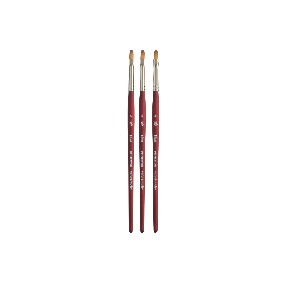 Princeton Velvetouch Filbert Brush, Synthetic Bristles, Short Handle Mixed Media Paintbrush, Scarlet, Size 4, Pack of 3