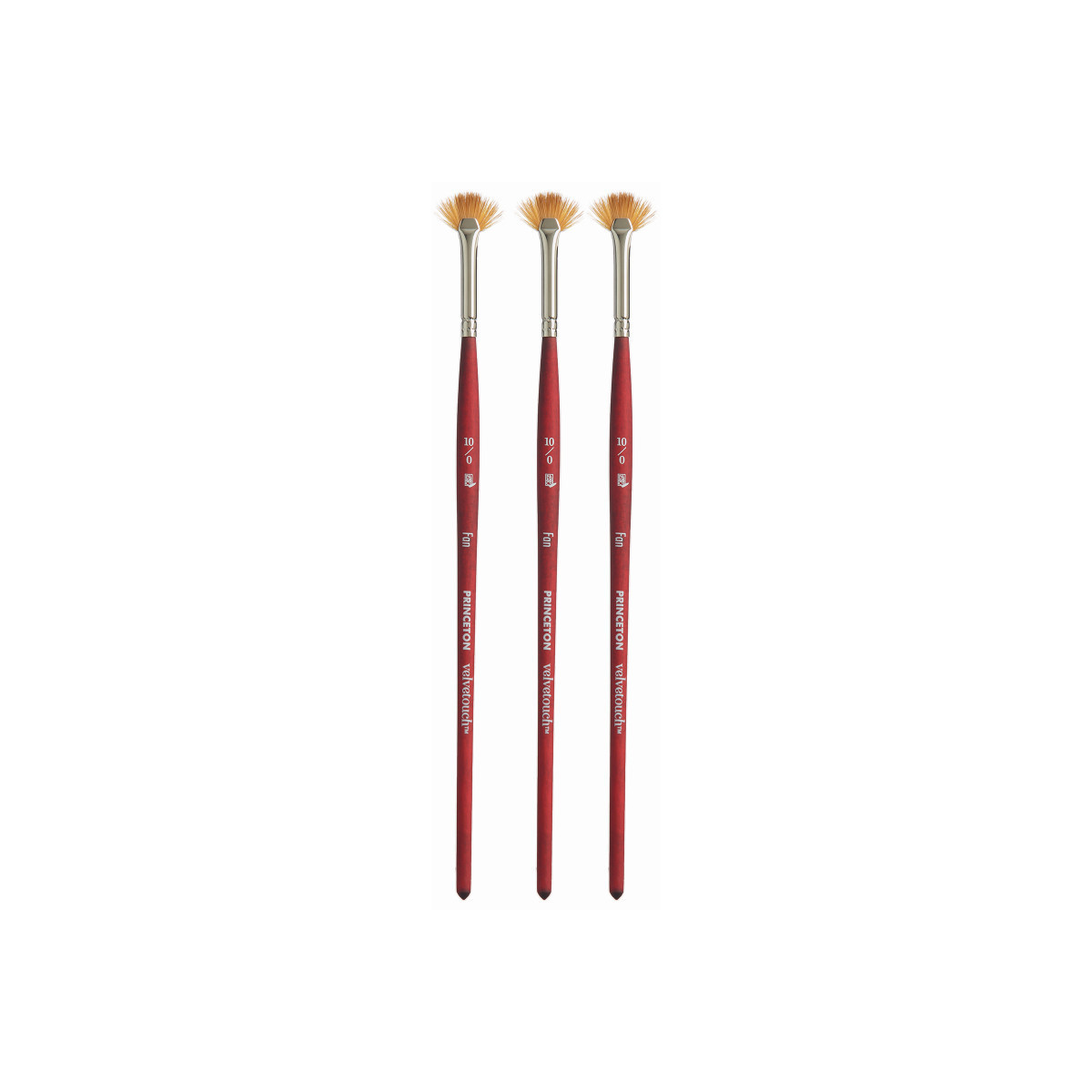 Princeton Velvetouch Fan Brush, Synthetic Bristles, Short Handle Mixed Media Paintbrush, Scarlet, Size 10/0, Pack of 3