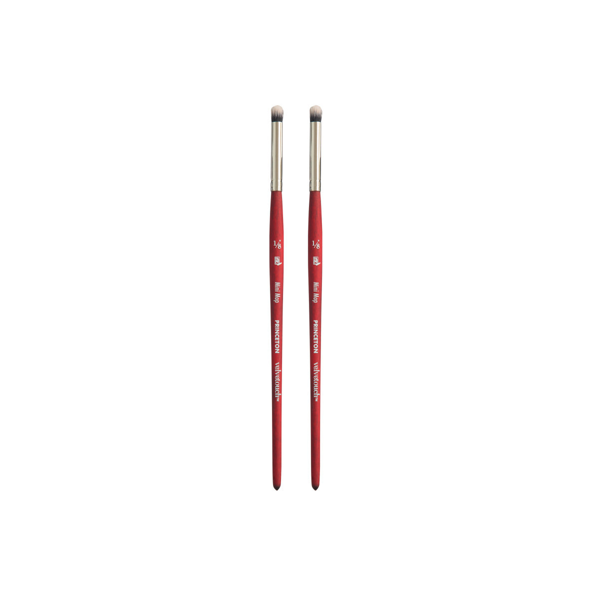 Princeton Velvetouch Mini Mop Brush, Synthetic Bristles, Short Handle Mixed Media Paintbrush, Scarlet, Size 1/8 inch, Pack of 2