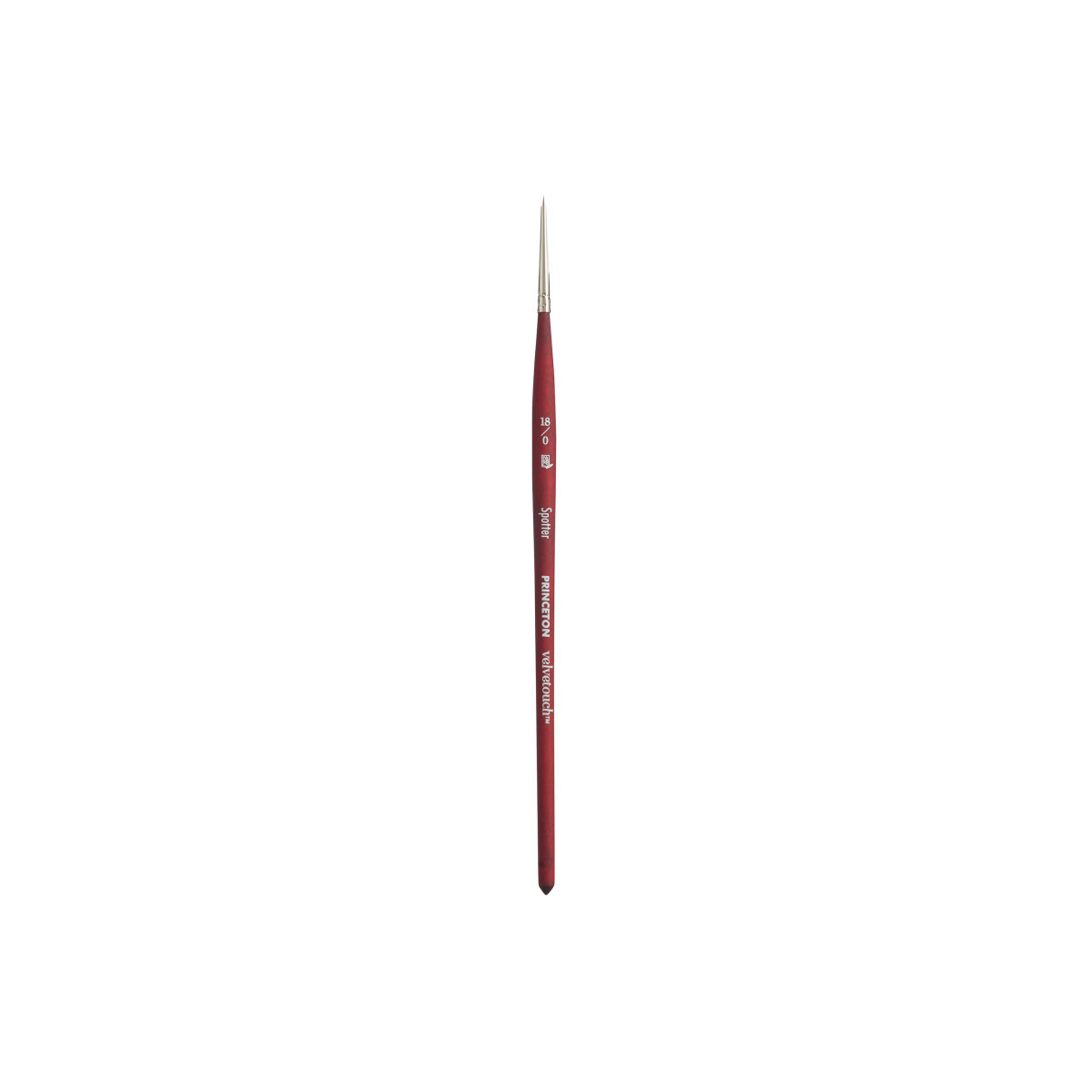 Princeton Velvetouch Spotter Brush, Synthetic Bristles, Short Handle Mixed Media Paintbrush, Scarlet, Size 18/0, 1 Count