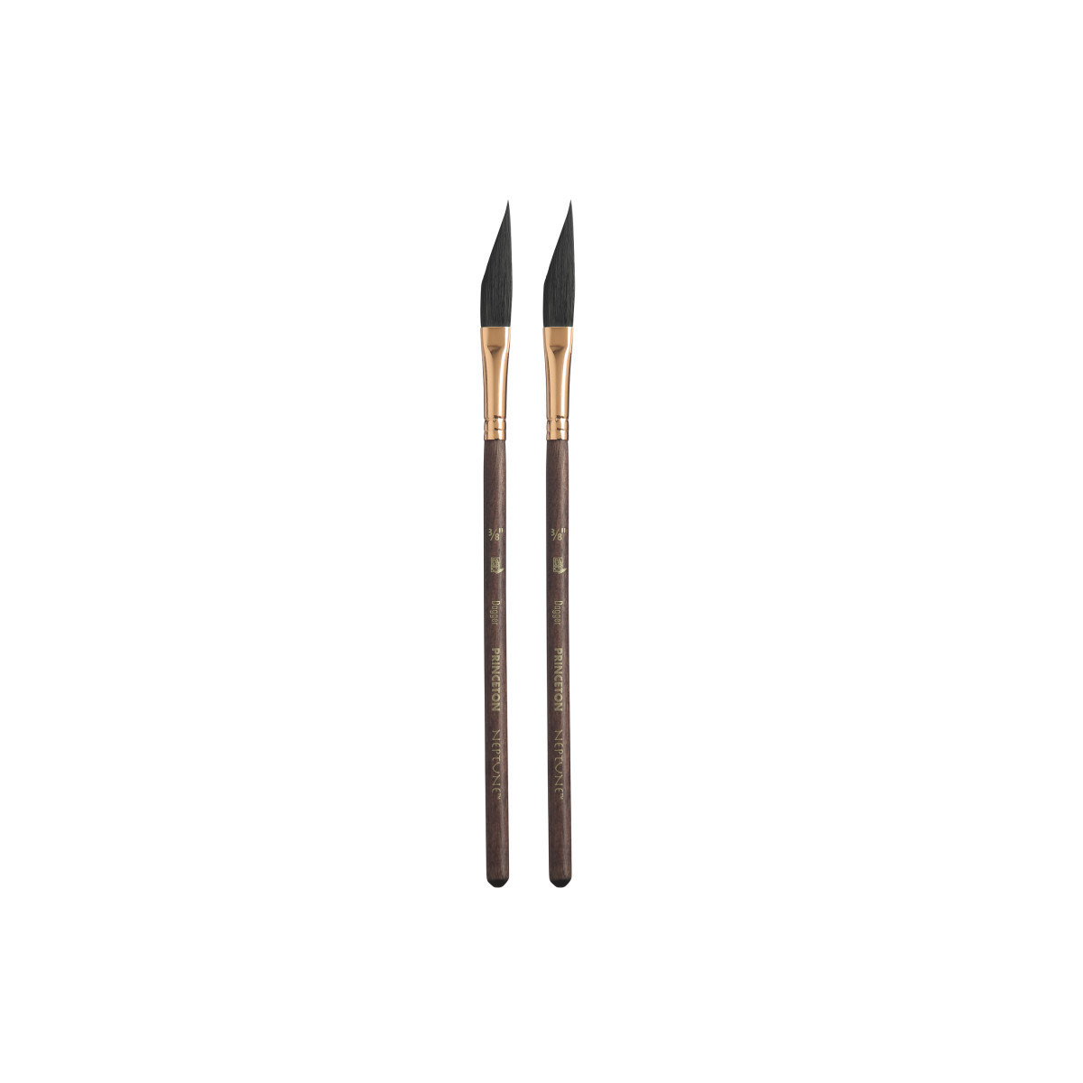 Princeton Neptune Dagger Brush, Synthetic Bristles, Short Handle Watercolor Paintbrush, Dark Wood, Size 3/8 inch, Pack of 2