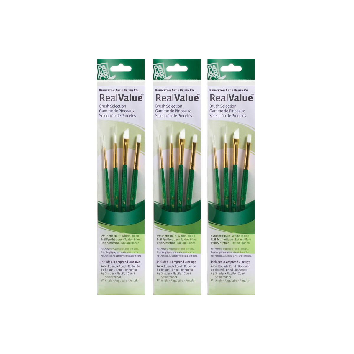 Princeton Artist Co. proudly presents the RealValue paintbrush collection—a curated series of meticulously selected brush sets that cater to every artistic need. Whether you prefer short-handle or long-handle styles, natural, synthetic, or a blend of bristles, the RealValue collection offers an unparalleled range of shapes and sizes. Designed to meet the demands of artists across all mediums—acrylic, watercolor, tempera, and oil—these brushes deliver exceptional mixed media performance at an incredible value. With RealValue, you'll find the perfect brush set to elevate your craft, whether you're just beginning or are a seasoned professional. Each set includes 4 brushes. Sold as 3 sets for a total of 12 brushes.
