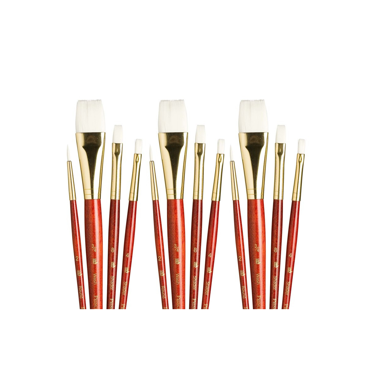Princeton RealValue Brush Set, White Taklon Bristles, Short Handle Mixed Media Paintbrush, Red, 4 Per Set, 3 Sets