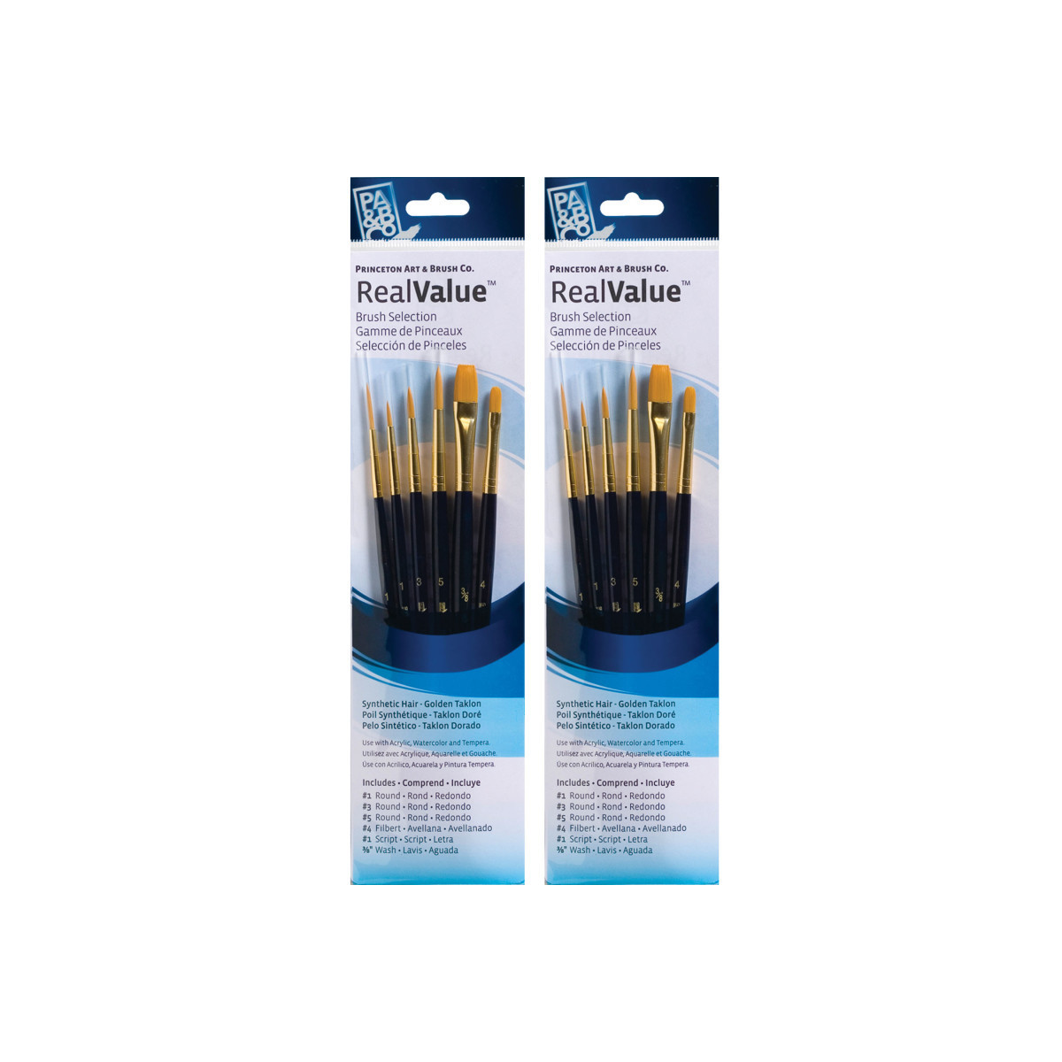 Princeton Artist Co. proudly presents the RealValue paintbrush collection—a curated series of meticulously selected brush sets that cater to every artistic need. Whether you prefer short-handle or long-handle styles, natural, synthetic, or a blend of bristles, the RealValue collection offers an unparalleled range of shapes and sizes. Designed to meet the demands of artists across all mediums—acrylic, watercolor, tempera, and oil—these brushes deliver exceptional mixed media performance at an incredible value. With RealValue, you'll find the perfect brush set to elevate your craft, whether you're just beginning or are a seasoned professional. Each set includes 6 brushes. Sold as 2 sets for a total of 12 brushes.