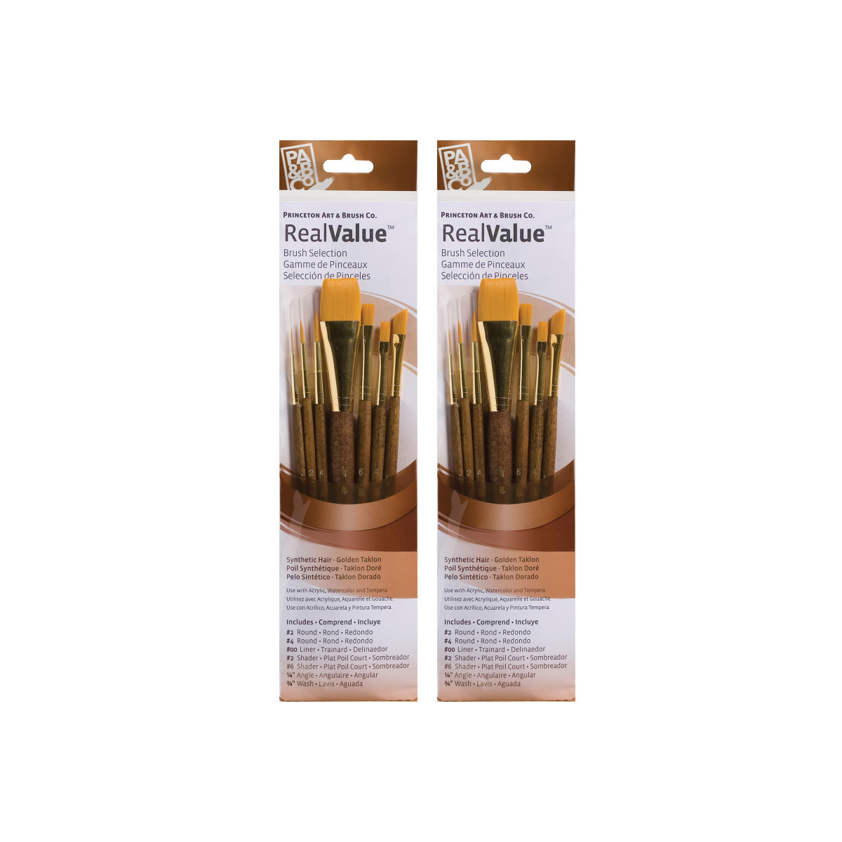 Princeton Artist Co. proudly presents the RealValue paintbrush collection—a curated series of meticulously selected brush sets that cater to every artistic need. Whether you prefer short-handle or long-handle styles, natural, synthetic, or a blend of bristles, the RealValue collection offers an unparalleled range of shapes and sizes. Designed to meet the demands of artists across all mediums—acrylic, watercolor, tempera, and oil—these brushes deliver exceptional mixed media performance at an incredible value. With RealValue, you'll find the perfect brush set to elevate your craft, whether you're just beginning or are a seasoned professional. Each set includes 7 brushes. Sold as 2 sets for a total of 14 brushes.