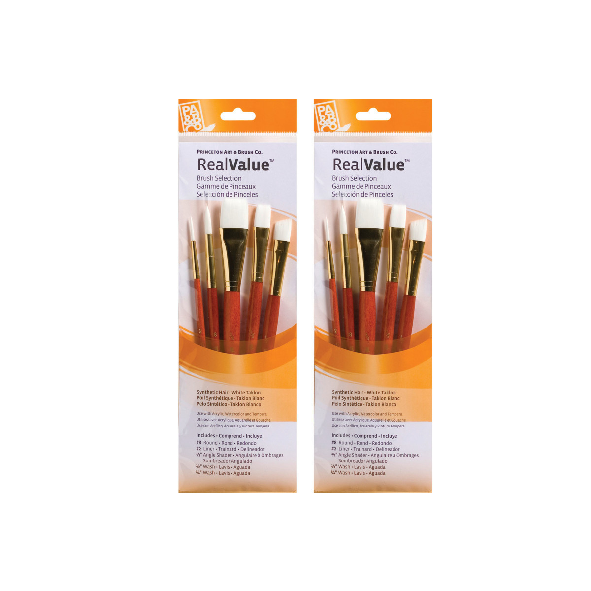 Princeton Artist Co. proudly presents the RealValue paintbrush collection—a curated series of meticulously selected brush sets that cater to every artistic need. Whether you prefer short-handle or long-handle styles, natural, synthetic, or a blend of bristles, the RealValue collection offers an unparalleled range of shapes and sizes. Designed to meet the demands of artists across all mediums—acrylic, watercolor, tempera, and oil—these brushes deliver exceptional mixed media performance at an incredible value. With RealValue, you'll find the perfect brush set to elevate your craft, whether you're just beginning or are a seasoned professional. Each set includes 5 brushes. Sold as 2 sets for a total of 10 brushes.