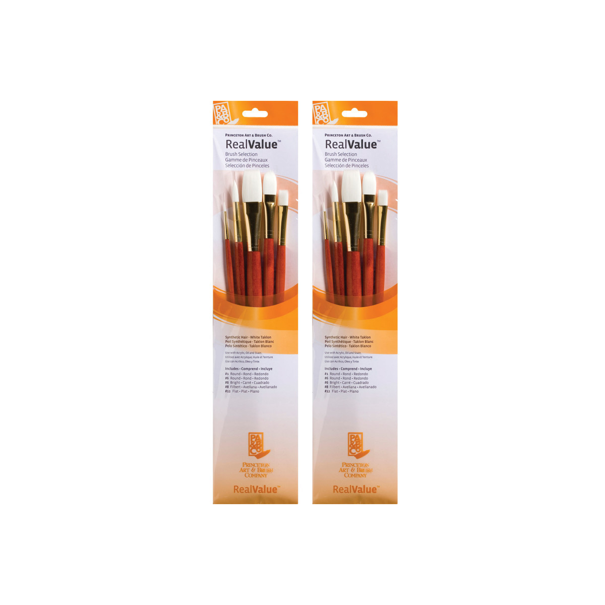 Princeton RealValue Brush Set, White Taklon Bristles, Long Handle Mixed Media Paintbrush, Orange, 5 Per Set, 2 Sets