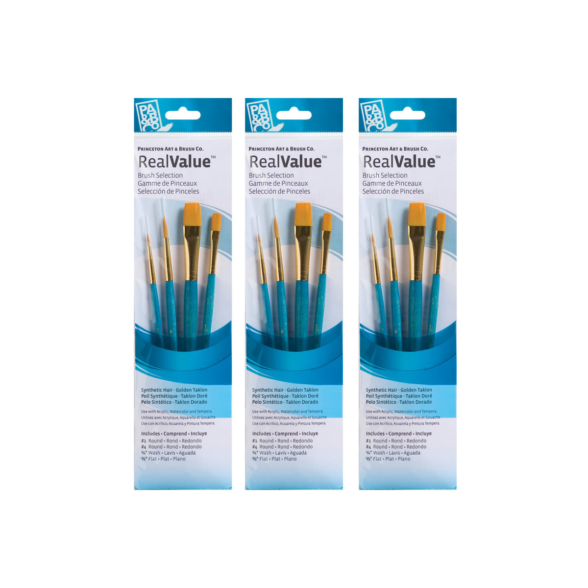 Princeton Artist Co. proudly presents the RealValue paintbrush collection—a curated series of meticulously selected brush sets that cater to every artistic need. Whether you prefer short-handle or long-handle styles, natural, synthetic, or a blend of bristles, the RealValue collection offers an unparalleled range of shapes and sizes. Designed to meet the demands of artists across all mediums—acrylic, watercolor, tempera, and oil—these brushes deliver exceptional mixed media performance at an incredible value. With RealValue, you'll find the perfect brush set to elevate your craft, whether you're just beginning or are a seasoned professional. Each set includes 4 brushes. Sold as 3 sets for a total of 12 brushes.