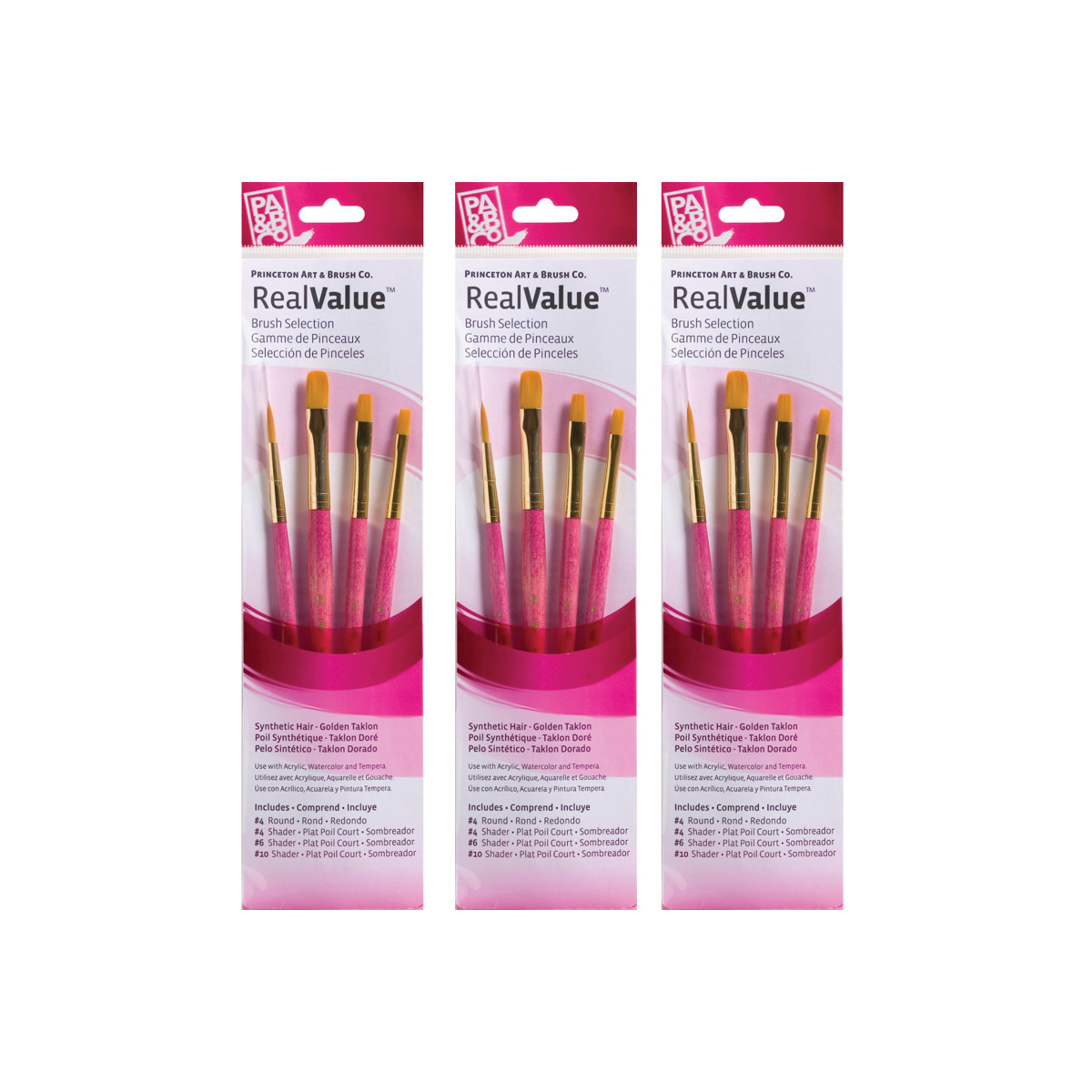 Princeton Artist Co. proudly presents the RealValue paintbrush collection—a curated series of meticulously selected brush sets that cater to every artistic need. Whether you prefer short-handle or long-handle styles, natural, synthetic, or a blend of bristles, the RealValue collection offers an unparalleled range of shapes and sizes. Designed to meet the demands of artists across all mediums—acrylic, watercolor, tempera, and oil—these brushes deliver exceptional mixed media performance at an incredible value. With RealValue, you'll find the perfect brush set to elevate your craft, whether you're just beginning or are a seasoned professional. Each set includes 4 brushes. Sold as 3 sets for a total of 12 brushes.