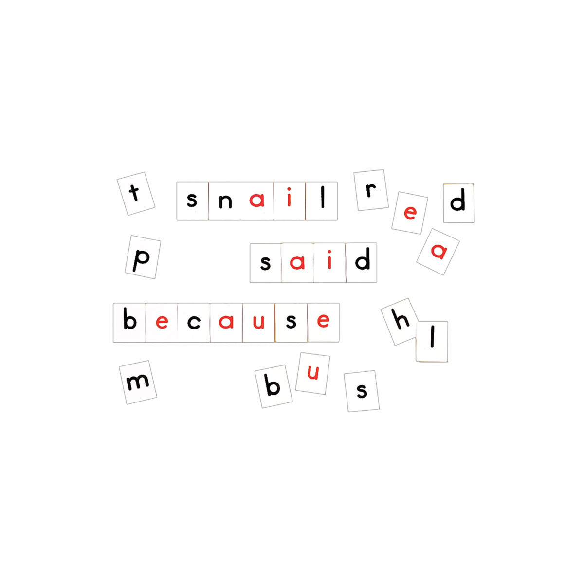 Set of 45 lowercase, plastic letter tiles, red vowels and black consonants, in a handy ziplock bag. Red vowels and black consonants. Includes 2 each of 19 high-frequency letters. 45 tiles