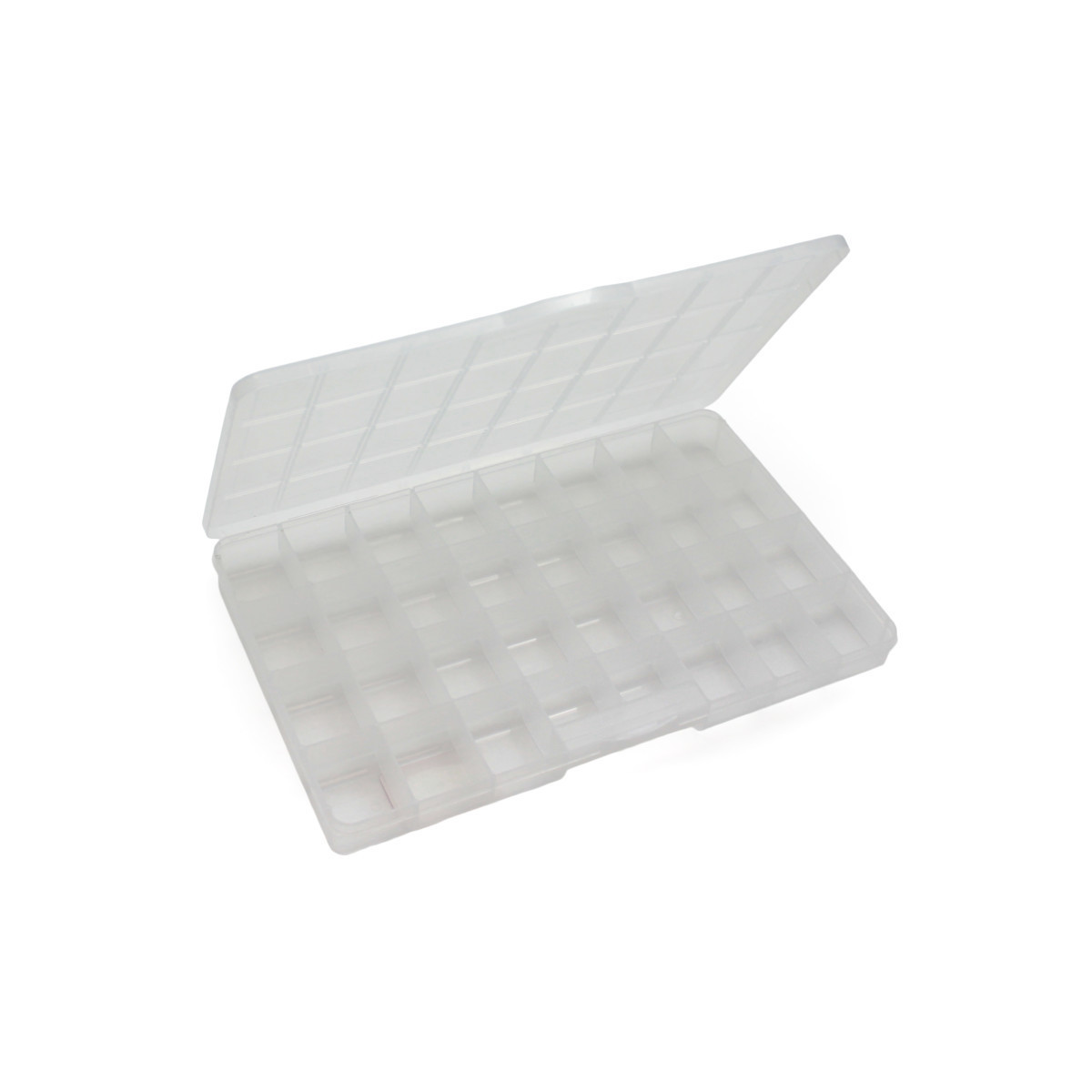 Store and organize all your alphabet letters or other small items in this versatile, clear plastic container. Measures 13.7" x 8.6" x 1.37" deep, with push-tight lid. 30 fixed compartments measure 1.6" x 2", and 2 fixed compartments measure 1.6" x 1.25".