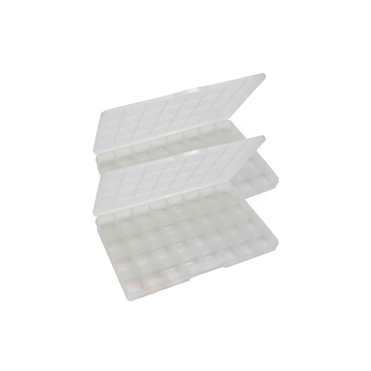 Store and organize all your alphabet letters or other small items in this versatile, clear plastic container. Measures 13.7" x 8.6" x 1.37" deep, with push-tight lid. 30 fixed compartments measure 1.6" x 2", and 2 fixed compartments measure 1.6" x 1.25". Sold as a pack of 2.