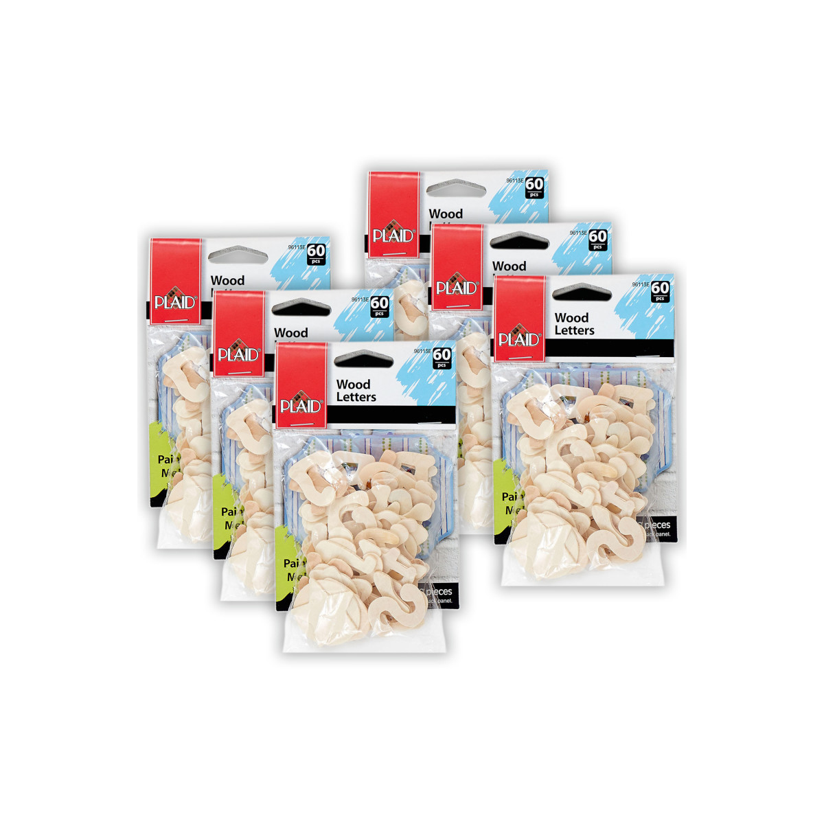 Decorating with letters and words is a great way to personalize the home, especially in children's rooms. Plaid's Wood Letters are designed to personalize surfaces such as frames, shelves, and plaques. Each pack includes 60 pieces. Sold as 6 packs for a total of 360 pieces.
