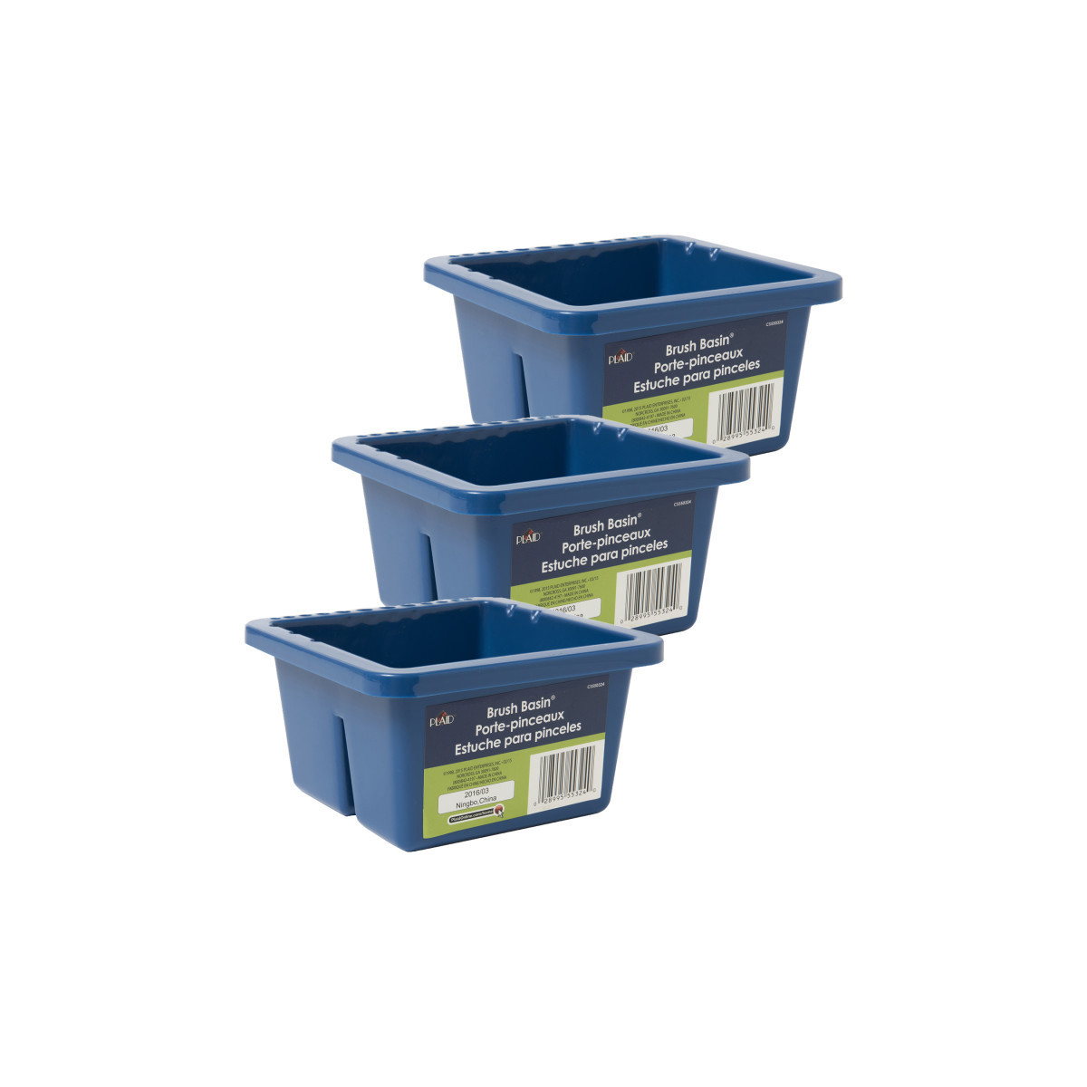 Care for your brushes with the Plaid Art Materials Brush Basin. This basin is equipped with an all-in-one design that keeps your brushes suspended in water with cleaning grooves on the bottom of the vessel. Store your brushes around the outside of the basin to dry, ready for your next painting project. Utilize the versatility of this expectational basin for all your painting needs. Sold as a pack of 3 brush basins.