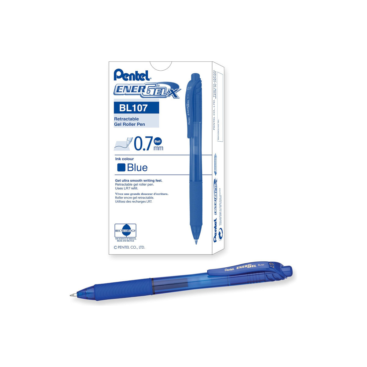 Advanced blend of super-smooth rollerball and gel ink = RollerGel Ink. No smear, no smudge, no globs. Quick drying ink formulation is ideal for lefties. Attractive color-tinted barrels with curved clip design match ink color. Comfortable latex-free grip provides extended writing control. Part of the Pentel Recycology line and made of 84% recycled plastic (excluding consumable content and refills). 0.7mm tip writes medium lines. Refillable. Sold as a pack of 12 pens.