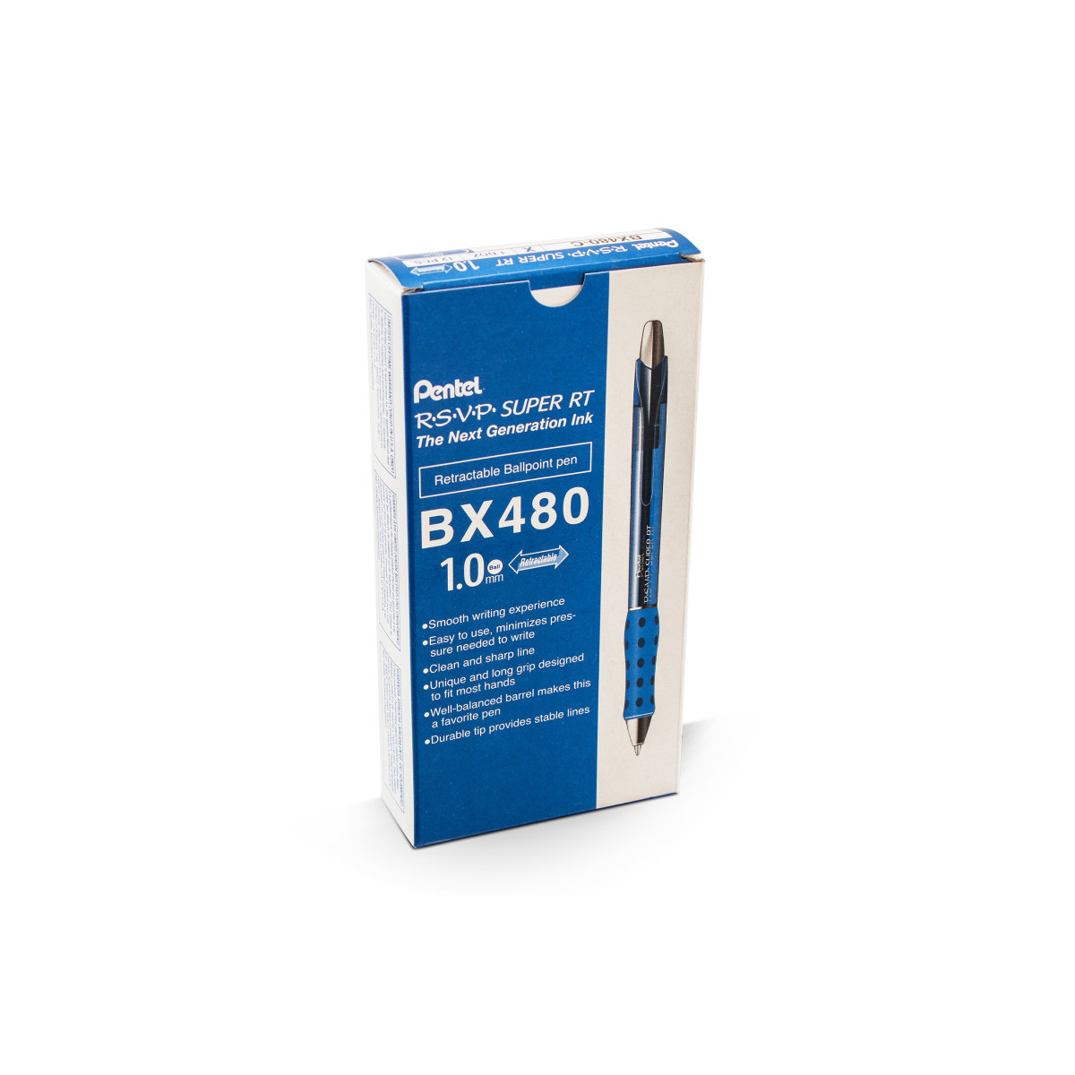 The Pentel® RSVP Super RT retractable ballpoint pen features Pentel's newest, super-smooth ballpoint ink. The special, low-viscosity ink formula doesn't drag, blob or scratch offering smoother writing than ever before. The pen includes elegant metal accents and a comfortable, contoured latex-free grip for easy, no-fatigue writing. Sleek barrel design feels great in your hand. Barrel colors match the ink color inside. The 1.0mm tip writes medium lines. Refillable with (BXL10) ink refills. Each pen is backed by a Limited Lifetime Warranty. Sold as a pack of 12 pens.