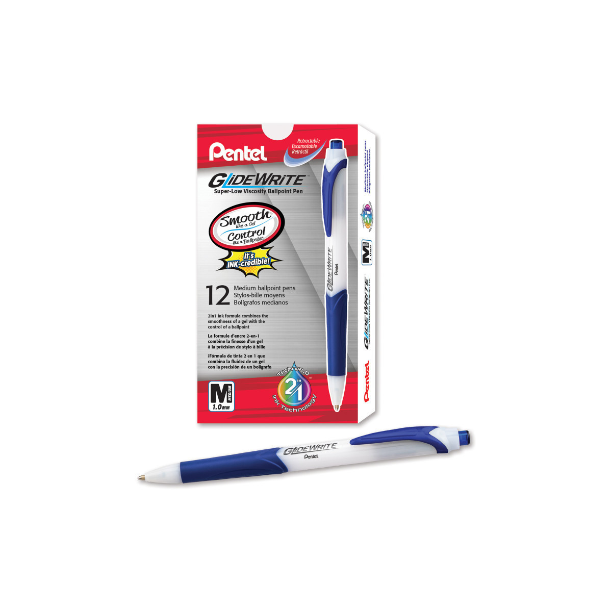 Elevate your writing to the next level with GlideWrite super-low-viscosity ballpoint pens. 2 in 1 ink formula combines the smoothness of a gel with the control of a ballpoint. Advanced breakthrough ink formula - TechniFLO, is a super-low-viscosity ink that ensures rich ink flow for smooth, easy writing. Internally tested to produce zero ink globbing and smearing. Refillable with BXTL10 ink refills. Each pack includes 12 pens.