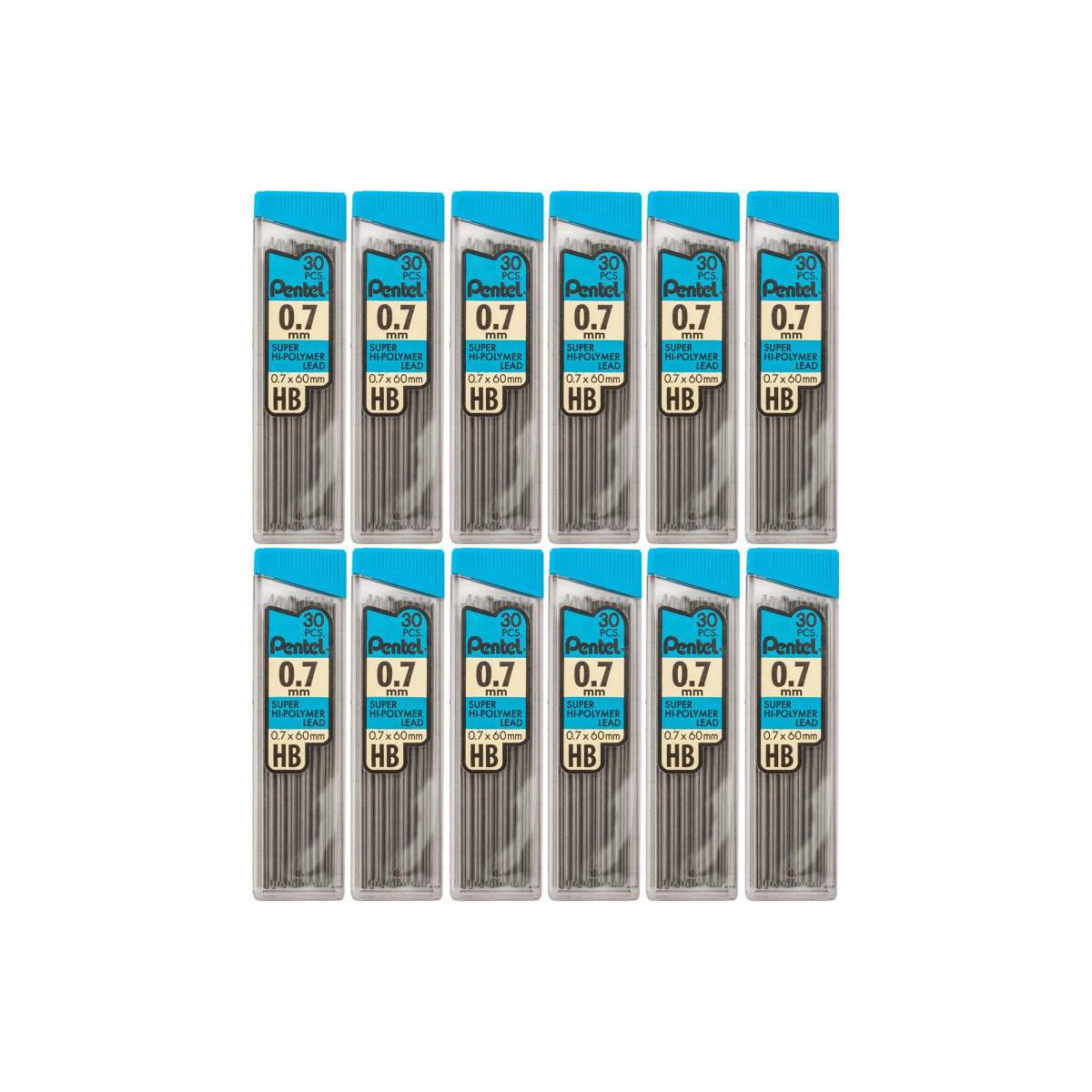 The world's #1 selling lead refills. Never needs sharpening and equivalent to #2 wooden pencils. Writes smooth dark lines and proprietary lead formula resists breaking. HB lead is guaranteed to scan on standardized tests. Each tube of Pentel Super Hi-Polymer HB lead is made of 100% recycled plastic and part of the Pentel Recycology line of products. 0.7mm lead produces crisp, medium lines of consistent density. Ideal for accounting and all general writing applications such as notes, letters, etc. Fits all 0.7mm mechanical pencils. 30 pieces in each tube. Sold as 12 tubes for a total of 360 pieces.