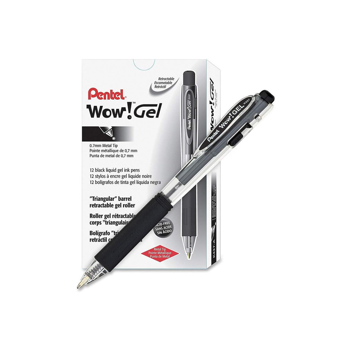 Permanent, waterproof, fade proof and acid-free gel ink. Triangular barrel fits comfortably in hands and latex-free grip provides a relaxed writing experience. Conveniently retractable to protect pockets and purses. Low in price, yet high in quality. 0.7mm tip writes produces crisp, medium lines. Sold as a pack of 24 pens.