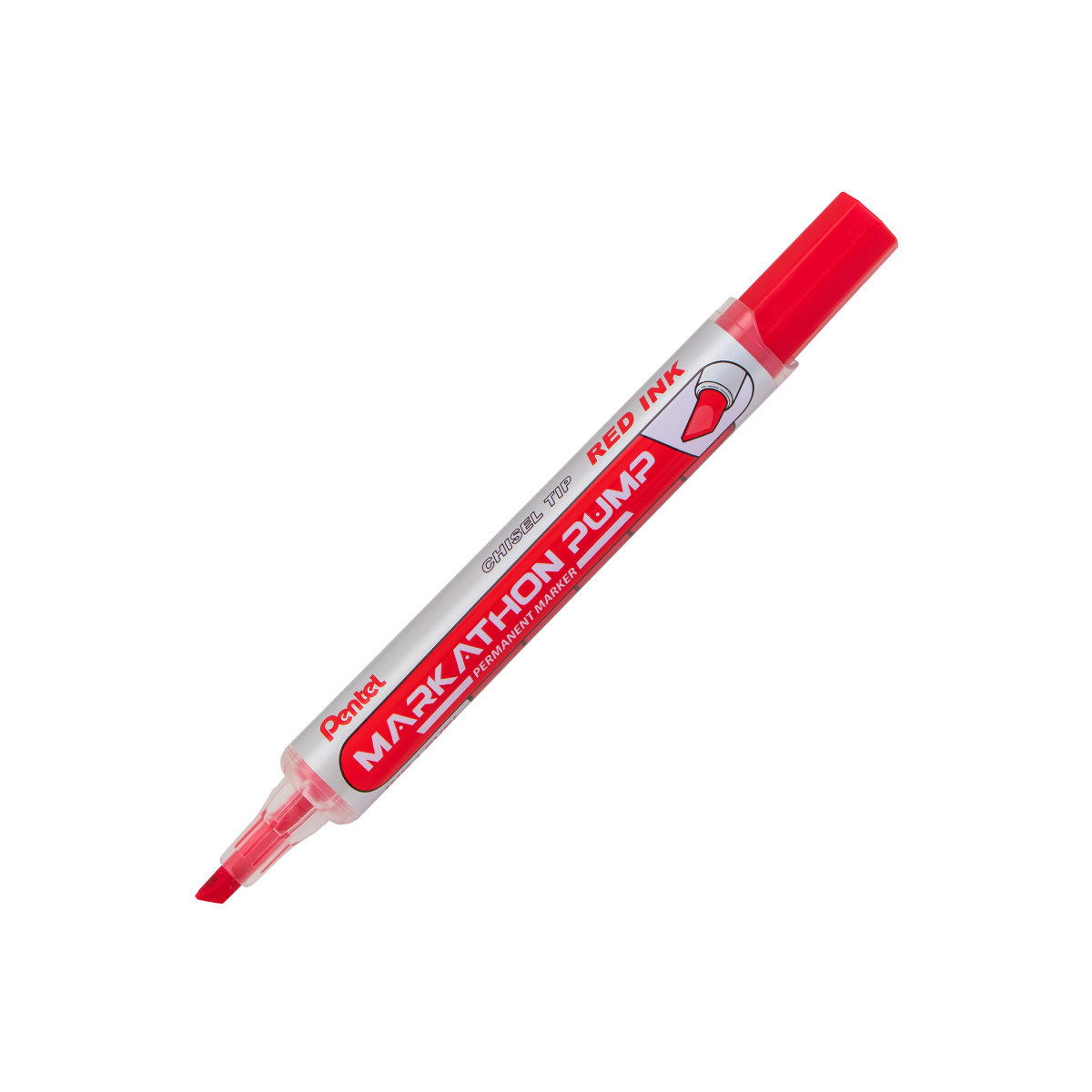 Markathon Pump permanent marker eliminates the dreaded marker dryout. Markathon Pump features a unique Inkjector Pump system. Simply place the cap on the back of the marker, and press the Inkjector Pump a few times to refresh ink flow. Firm chisel tip writes fine to broad lines. Each pack includes 12 markers.