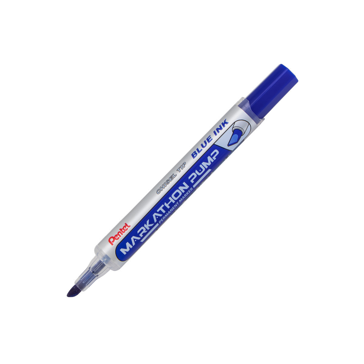 Markathon Pump permanent marker eliminates the dreaded marker dryout. Markathon Pump features a unique Inkjector Pump system. Simply place the cap on the back of the marker, and press the Inkjector Pump a few times to refresh ink flow. Firm chisel tip writes fine to broad lines. Each pack includes 12 markers.