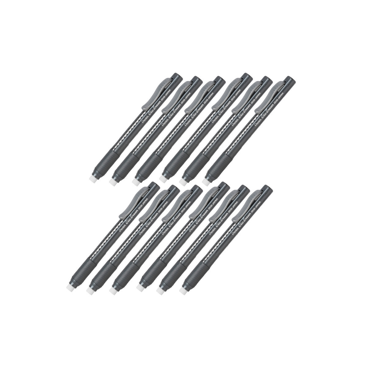 Premium latex-free white eraser removes lead easily. Won't scuff, smear or tear your paper. Pocket clip advances/retracts this long-lasting eraser with a "click". Maximum comfort and control with the latex-free grip. Sold as a pack of 12 erasers.
