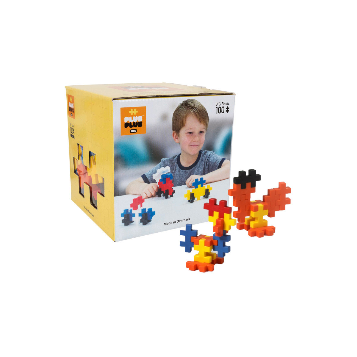 Plus-Plus is a whole new class of construction toy! One simple shape contains endless possibilities and hours of fun. Each piece easily connects to the next and lets your imagination create colorful flat mosaics or work in 3-D to make more intricate builds. A perfect on-the-go STEM toy for your budding builder! This Plus-Plus BIG size is perfect for smaller hands or bigger ideas. Well-suited for preschool and early learning environments, this set brings endless fun to kids who are developing their motor skills and recognizing colors, patterns and sorting —all while mixing play and creativity! This 100 piece set contains Basic Colors, including Red, Blue, Green, Yellow, Orange, Purple and more. Also includes an Idea Guide Booklet for building. Suggested for ages 18 months and up. BPA-free and phthalate-free. Designed and made in Denmark.