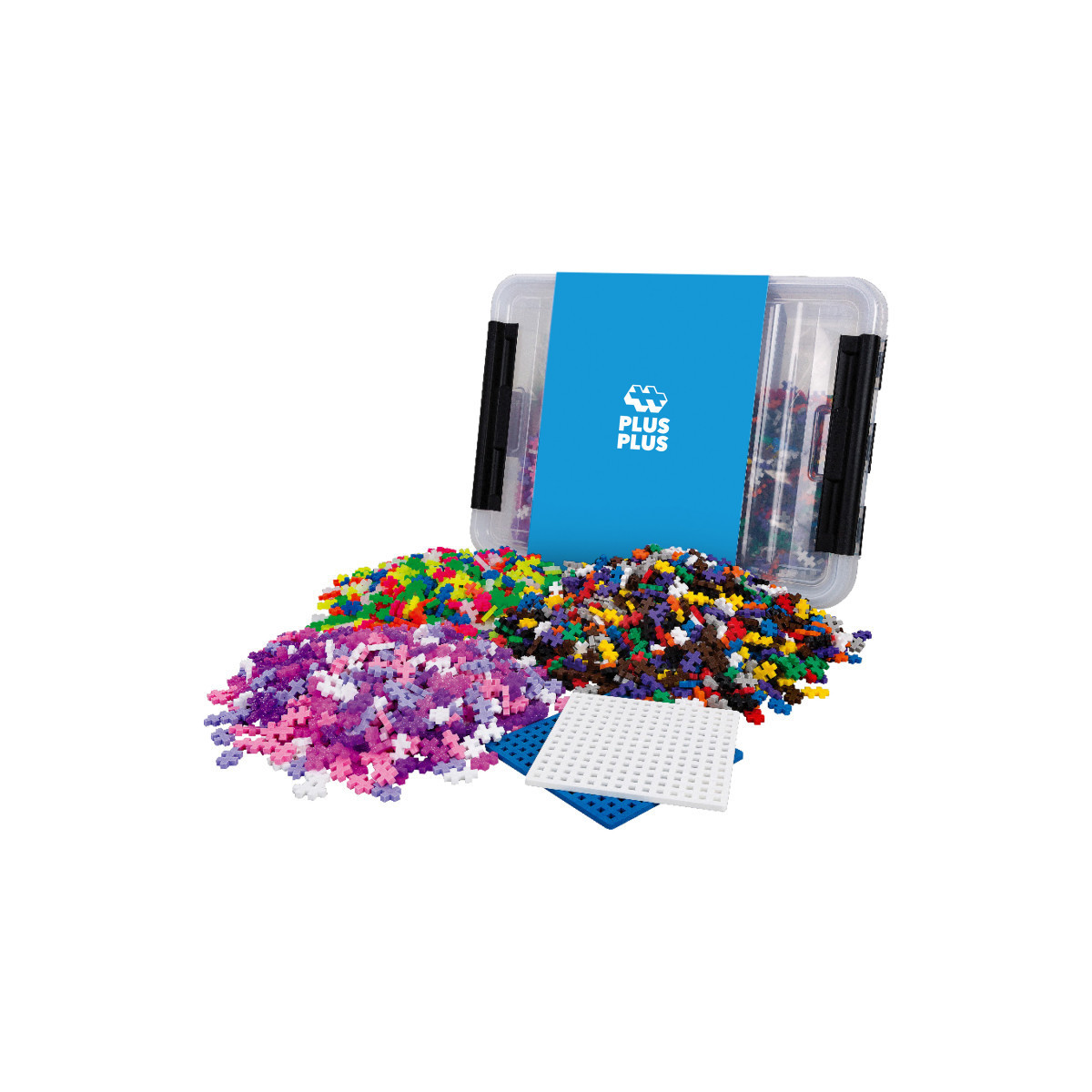 The 2400 piece tub with 2 baseplates is a great way to get started with Plus-Plus. Kids will learn to create in 2D or 3D, encouraging open-ended, creative play. It's a perfect STEM toy to develop fine motor skills, focus and patience. Great for classrooms or large groups of young kids, tweens or 'kidults'. Suggested for ages 5-12. Includes: a durable, re-closable tub, Guide Book, 2400 pieces (Mix of Red, Orange, Yellow, Green, Blue, Purple, Gray, White, Black, Pastel Pink, Glitter Pink, Pastel Purple, Glitter Purple, Neon Pink, Neon Orange, Neon Yellow, Neon Green, Neon Blue, Transparent), and 2 Baseplates (1 white and 1 blue).