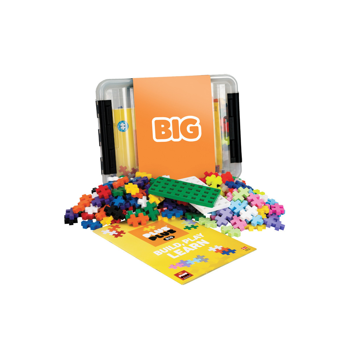 The BIG size is perfect for smaller hands or bigger ideas. Kids will learn to create in 2D or 3D, encouraging open-ended, creative play. It's a perfect STEM toy to develop fine motor skills, focus and patience. Great for classrooms or large groups of young kids, tweens or 'kidults'. Suggested for ages 2 years and up. Includes: a durable, re-closable tub, Idea Guide Book, 200 BIG pieces (Red, Orange, Yellow, Green, Blue, Purple, Gray, Black, White, Pastel Pink, Pastel Yellow, Pastel Purple, Pastel Green, Pastel Blue, Neon Pink, Neon Yellow, Neon Orange, Neon Green, Neon Blue, Transparent) , and 2 BIG Baseplates (1 White and 1 Green).
