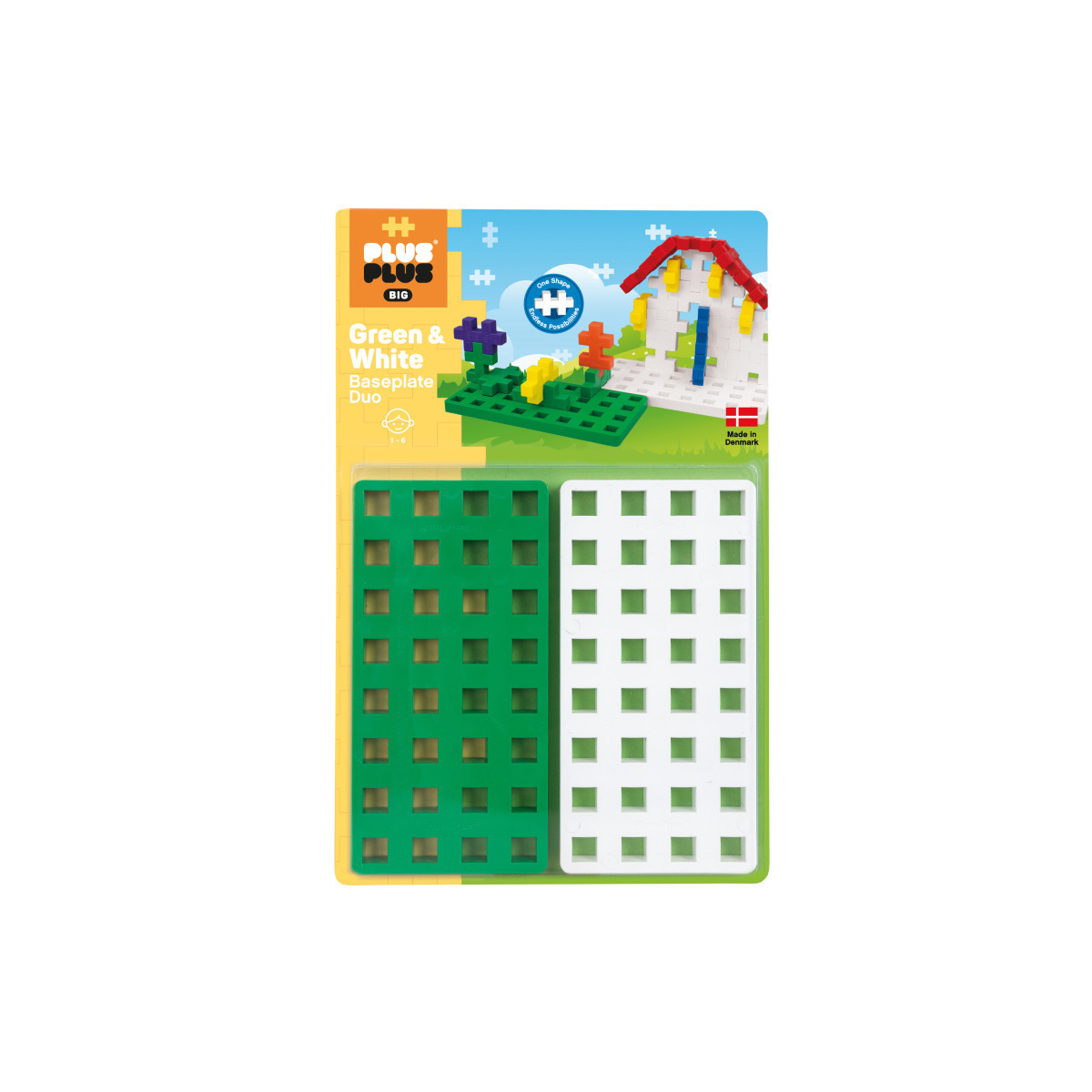 The BIG size is perfect for smaller hands or bigger ideas. This set includes 2 BIG baseplates, one green and one white.