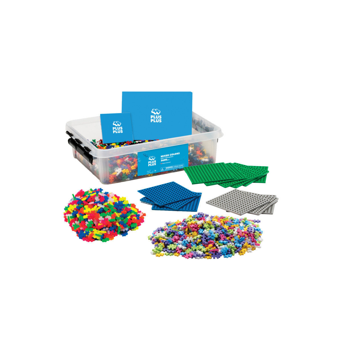 This amazing 3600 piece basic pack comes with a mix of all Basic, Neon, Pastel colors, and 6 green Baseplates, 3 blue Baseplastes, and 3 gray Baseplates packaged in a durable, reclosable tub.