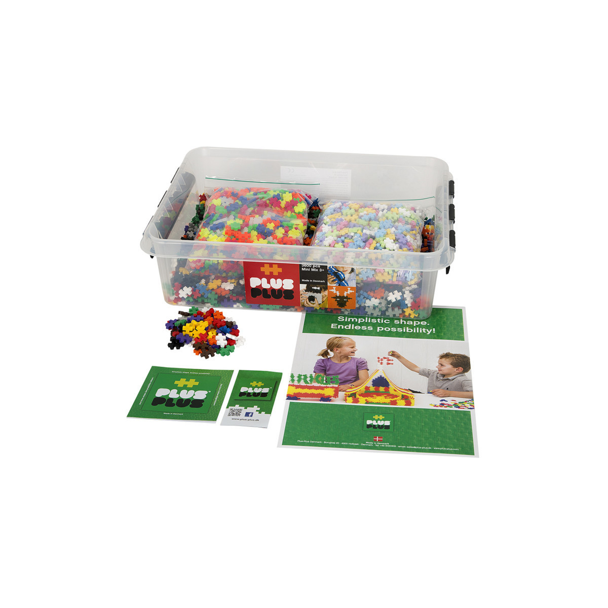 Plus-Plus is a whole new class of construction toy! One simple shape contains endless possibilities and hours of fun. Each piece easily connects to the next and lets your imagination create colorful flat mosaics or work in 3-D to make more intricate builds. Even curves are possible thanks to the unique design of this deceptively simple shape! A perfect STEM toy to develop fine motor skills, focus and patience - as well as design, imagination and creativity! All Plus-Plus sets are compatible with each other and this open play set adds more pieces and colors to the collection for more possibilities and fun. This 3,600 piece set comes with a mix of all Basic, Neon and Pastel colors, 21 colors in all. Also includes a reusable storage tub an Idea Guide Booklet for building. BPA-free and phthalate-free. Designed and made in Denmark.